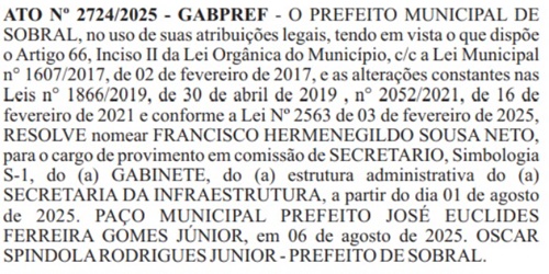 SOBRAL – Hermenegildo Sousa Neto está de volta a Secretaria de Infraestrutura.