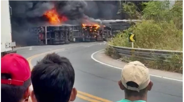 Um grave incêndio foi registrado na manhã desta sexta-feira (31) após a colisão de dois caminhões na BR-222, no trecho que corta o município de Tianguá, na Serra da Ibiapaba. As imagens gravadas por testemunhas mostram os veículos completamente tomados pelas chamas e uma densa fumaça negra cobrindo a rodovia.