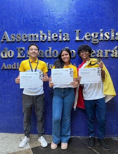 Os estudantes Antônia Marcela, Francisco Lucas e Juan Pablo representaram Sobral, pela primeira vez, na fase final da olimpíada, realizada em agosto, na Universidade Estadual de Campinas (Unicamp), em São Paulo. A conquista marca um momento histórico para a rede municipal, que vem ampliando o incentivo à participação dos alunos em olimpíadas do conhecimento em diferentes áreas.