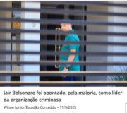 A Primeira Turma do Supremo Tribunal Federal (STF) decidiu nesta quinta-feira (11) condenar o ex-presidente Jair Bolsonaro e mais sete réus pela trama golpista ao pagamento solidário de R$ 30 milhões pelos danos causados pela depredação das sedes dos Três Poderes durante os atos golpistas de 8 de janeiro. Com a decisão, Bolsonaro e os demais condenados deverão ajudar a pagar os prejuízos provocados com o vandalismo ocorrido no edifício-sede do Supremo, Congresso e o Palácio do Planalto. […]